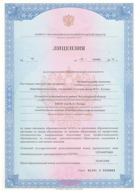 Полное наименование образовательной организации* Муниципальное казенное общеобразовательное учреждение «Средняя школа № 4 г. Котово» Котовского муниципального района Волгоградской области